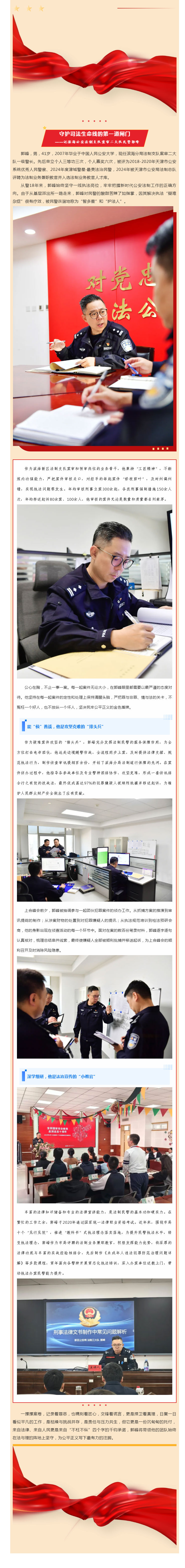 守护司法生命线的第一道闸门 ——记滨海公安法制支队案审二大队民警郭峰